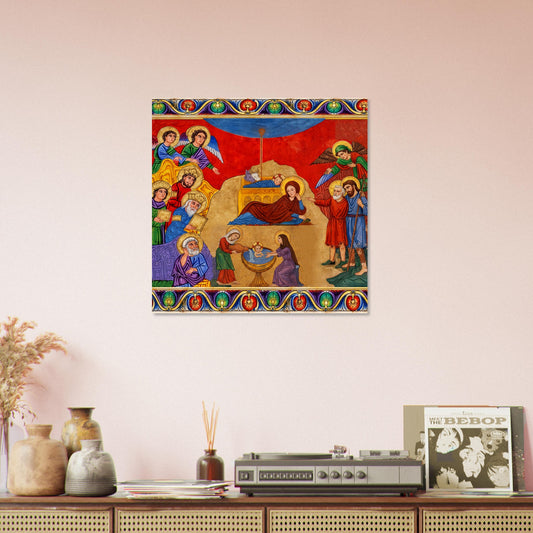 Nativity of Christ – Syriac Manuscript Icon | Christmas Birth of Jesus | Wood Plaque Sacred Art