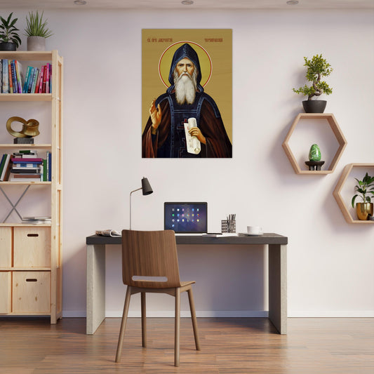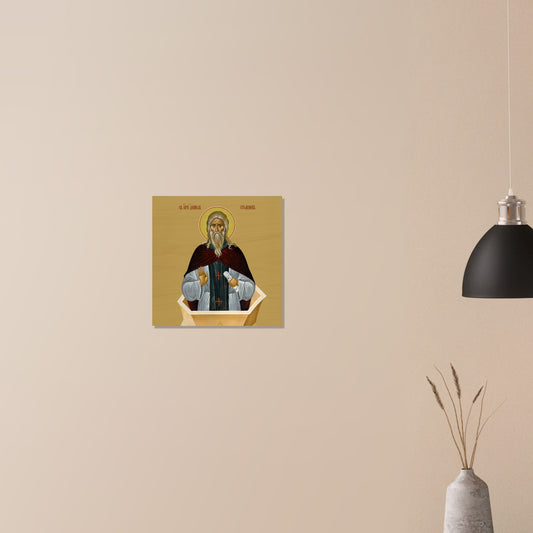 Saint Lawrence of Chernigov Wooden Plaque Icon - Rustic Wood Print Artwork