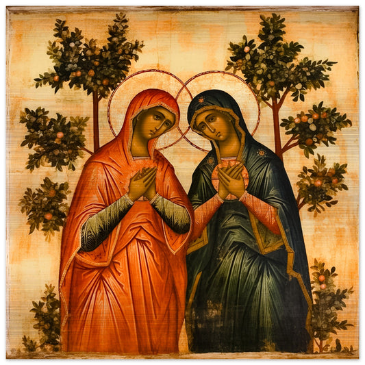 Blessed Mother Virgin Mary and Saint Eve Icon Brushed Aluminum Print