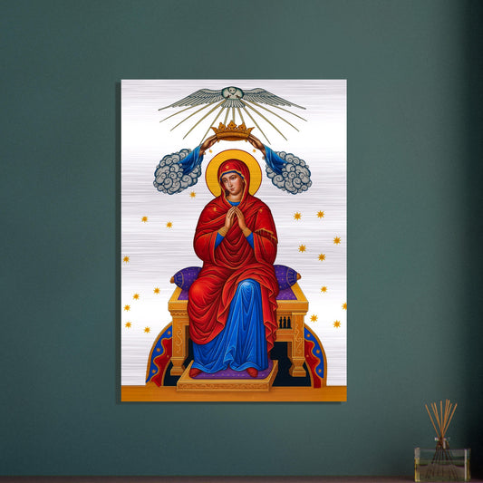 Coronation of the Theotokos, crowning of Mary, the Mother of God, as Queen of Heaven and Earth Brushed Aluminum Plaque Icon