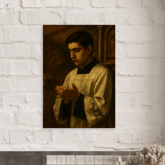 Altar Server in Prayer Baroque Portrait - Traditional Latin Mass Wood Print