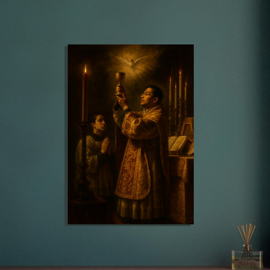 Wood Print - Baroque Mass with Priest and Dove - Traditional Latin Rite Artwork