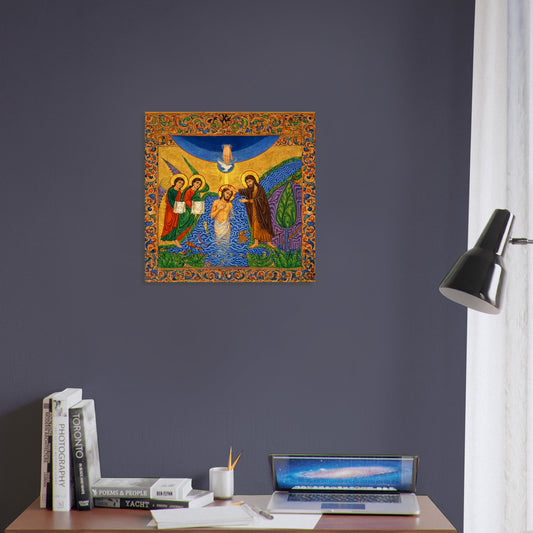 The Baptism of Our Lord Syriac Manuscript–Inspired Icon on Wooden Plaque