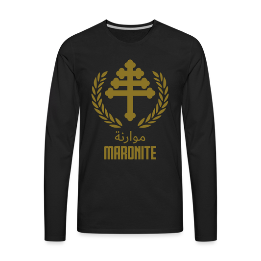 Maronite Cross Emblem Men's Premium Long Sleeve T-Shirt Golden Print