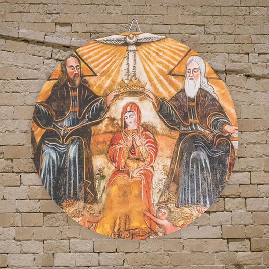 Immaculate Heart Wood Circular Icon - Our Lady Virgin Mary