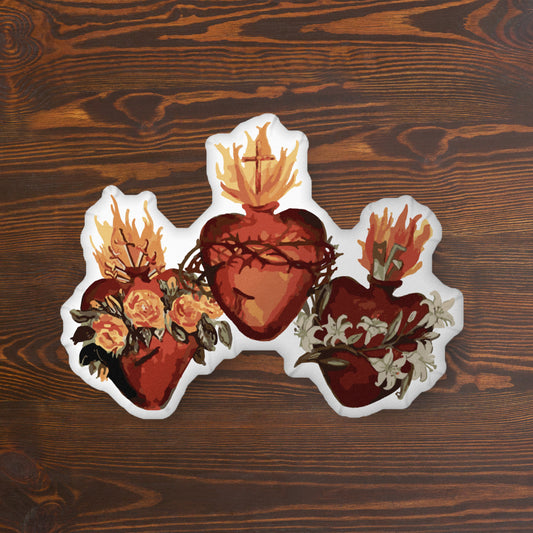 The three hearts of the Holy Family Heart of Our Lady Virgin Mary, Jesus and Joseph - Custom-shaped pillow